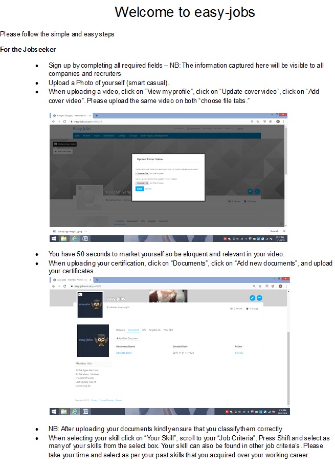Easy-Jobs is an interactive, innovative portal for Applicants and Recruiters. With advanced technology we have bridged the gap between Applicants and Recruiters with just a few clicks of a button. We have done extensive research before we developed this portal and have taken the Angst out of the recruitment and selection process.